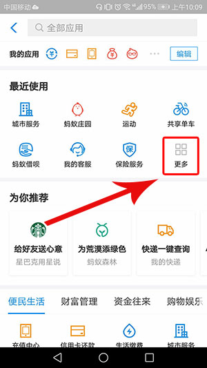 打開手機(jī)支付寶APP,注冊賬號,在軟件里找到更多服務(wù)。