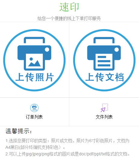在微信公眾號上菜單欄有【我要打印】,點擊進去