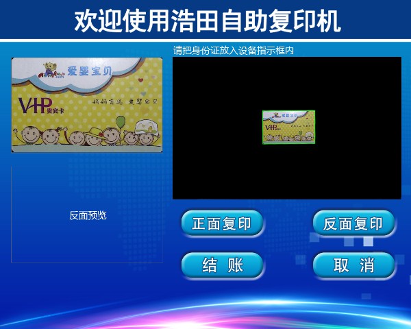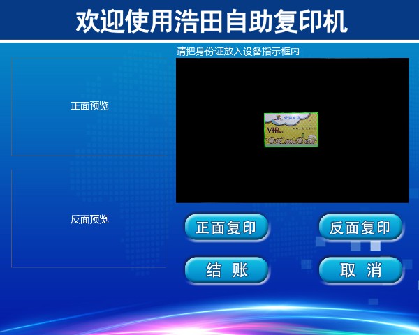 把身份證反面放入掃描框,點擊【反面復印】,左側顯示完成后可點擊【結賬】